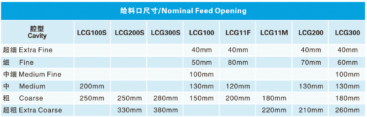 樂礦 LCG 系列圓錐破碎機可以針對不同的生產(chǎn)要求輕松調(diào)整腔型,通過選擇不同的破碎腔型,同一臺破碎機可用于破碎生產(chǎn)過程中的第2 段、第3 段或第4 段,以生產(chǎn)不同尺寸的最終產(chǎn)品。通過沖程更換功能可以輕松地對破碎機物料通過量進行調(diào)整,以便與其他破碎設備的運轉相協(xié)調(diào)。LCG 系列圓錐破碎機廣泛的適用性得益于同一主機結構可以通過更換襯板來獲得不同破碎腔型,因而能夠根據(jù)破碎流程的變化來調(diào)整破碎機的腔型,適用性更廣。